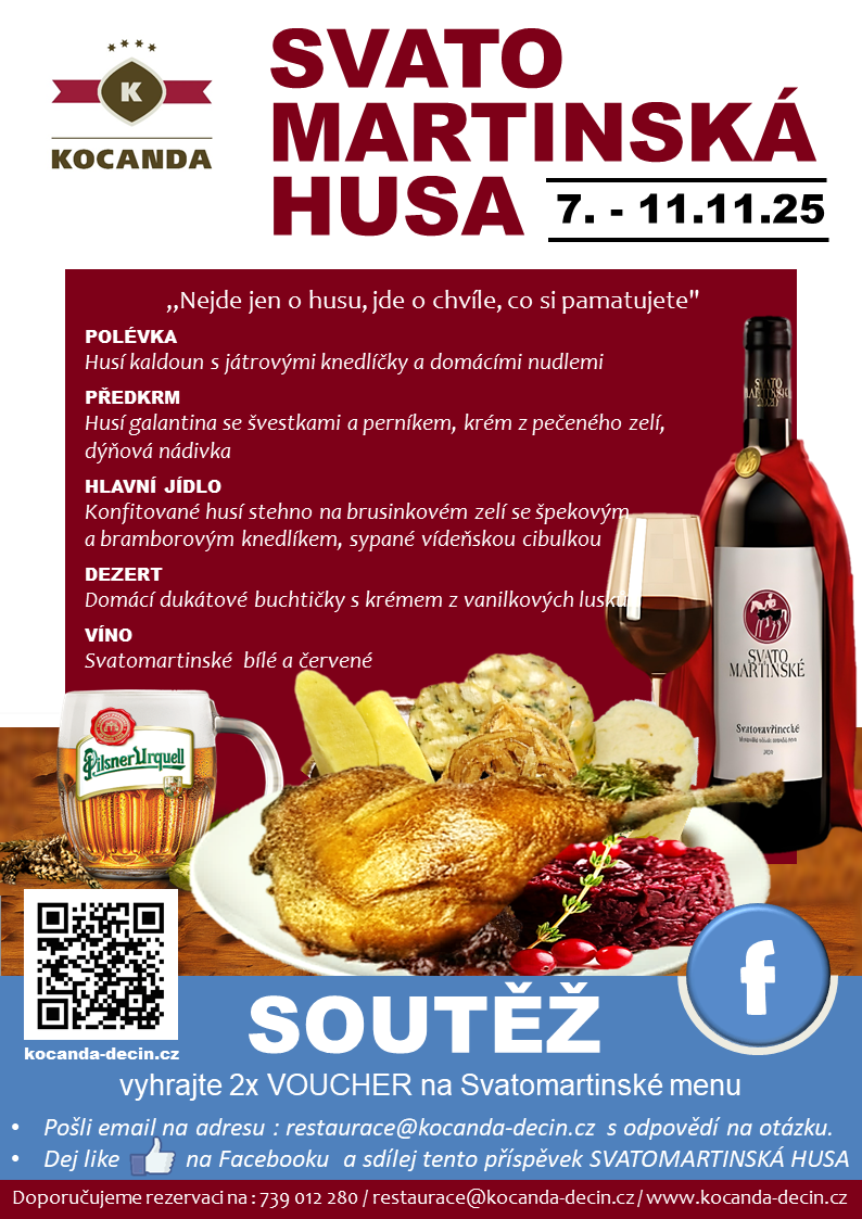3. Sdílej tento příspěvek "SVATOMARTINSKÁ HUSA ":htps://www.facebook.com/kocanda.decin